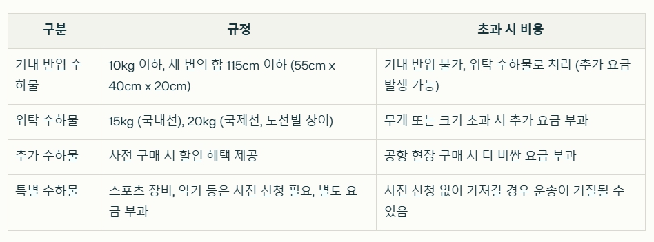수하물 규정을 제대로 확인하지 않으면 공항에서 당황하거나 추가 비용을 지불해야 할 수 있습니다.